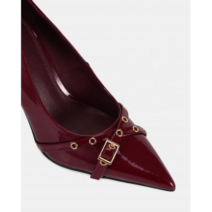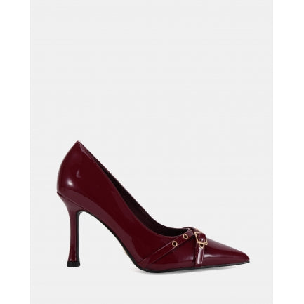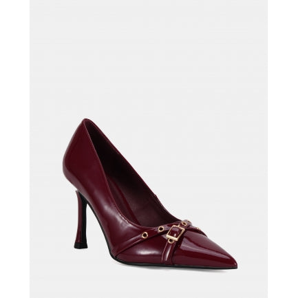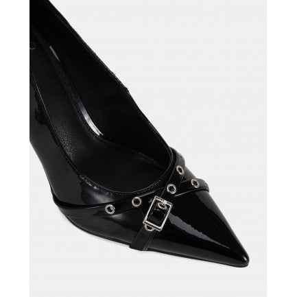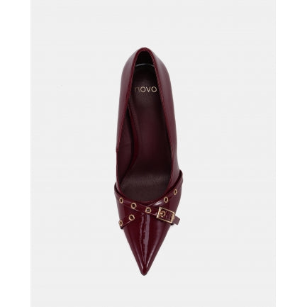 Novo Women's Ikeda High Heels - Patent Finish Pointed Toe Pumps with Grommet Straps, 9cm Stilettos