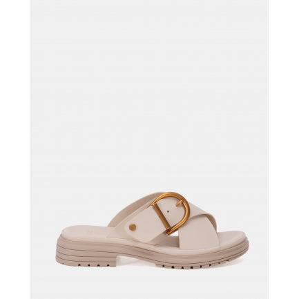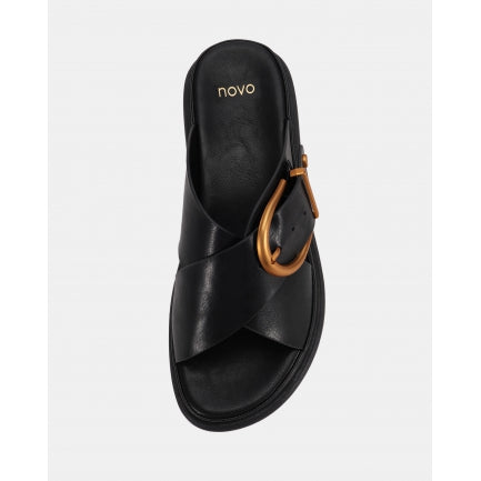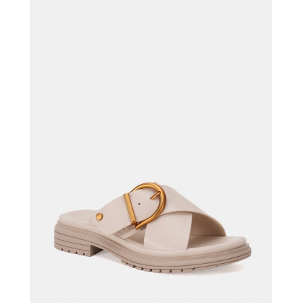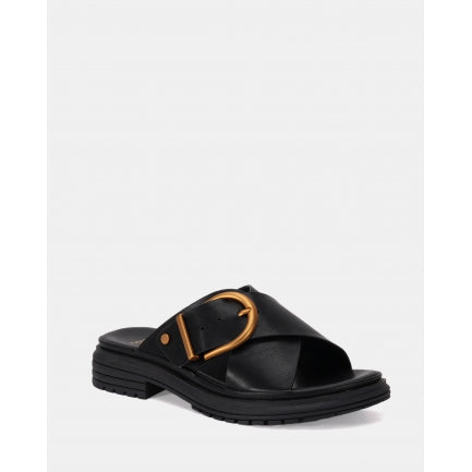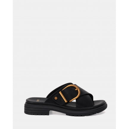 Add a bold element to your everyday looks with these SHEIKA slides. With a leather-look finish, this pair features thick straps crossing over the vamp. The gold buckle on the top strap looks stylish and functional - it can be adjusted to ensure a secure and comfortable fit for all-day wear.