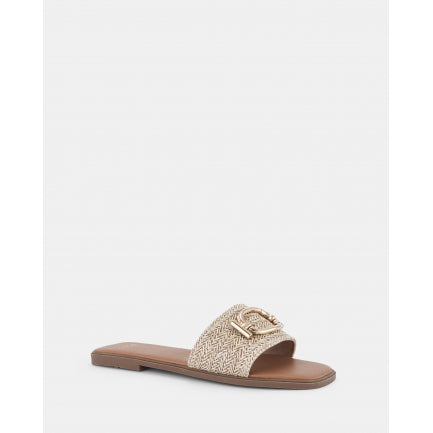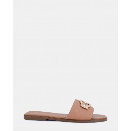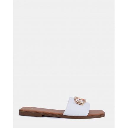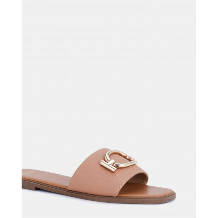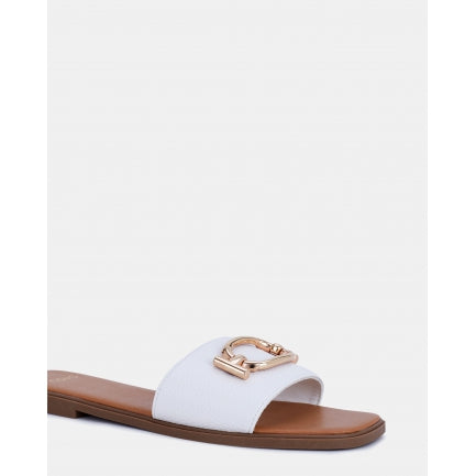 Crafted from leather-look material, these slides are both beautiful and breathable, providing maximum comfort even on the hottest days. The metallic buckle detail adds a touch of elegance. Pair them with a sundress or your favourite shorts; these slide sandals are perfect for any summer adventure.