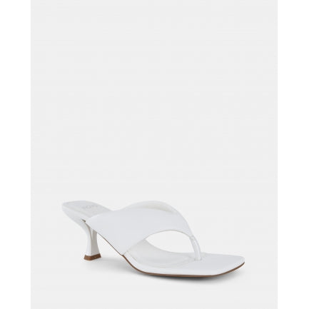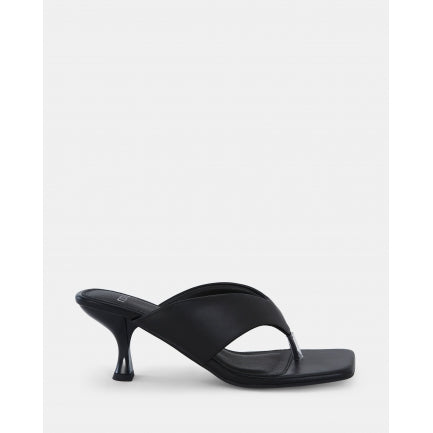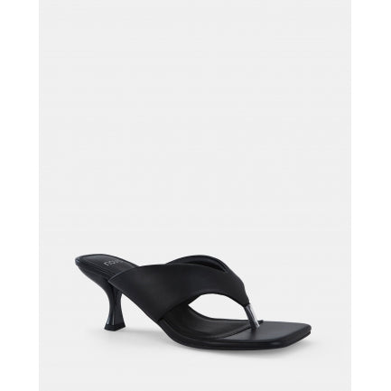 Set on a shapely kitten heel, URZILA open toe heels add confidence with every step. This striking pair is finely crafted in leather-look material for endless styling options. Wear them with mid-length dresses for a conversation-starting look.