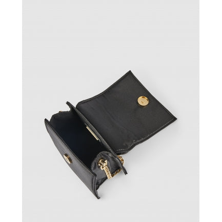 A stylish bag speaks louder than words! Designed for a true fashionista, AFRIAT crossbody bag brings a touch of sophistication to every outfit it gets paired with. This elegant bag is adorned with a signature gold ring around the handle, along with a gold chain strap, so that it can dynamically be worn as a crossbody or carried in the hand. Crafted with a satin upper.