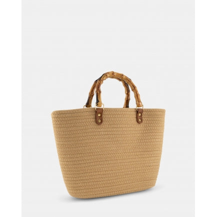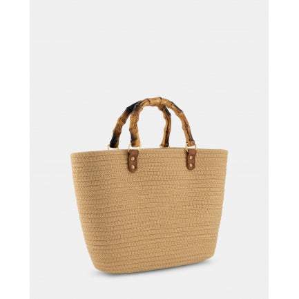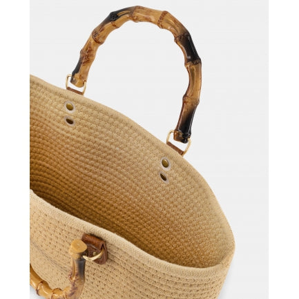 Meet the hottest trend for your stunning vacation. Crafted in raffia, APOLONIA basket bag has a chill, vacay vibe. With nature-inspired texture accompanied by the wooden handles, this bag can hold all your vacation essentials.
