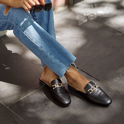 Novo Women's Carletta Backless Loafers with Metal Chain Detail - Stylish Casual Flats in 5 Colors