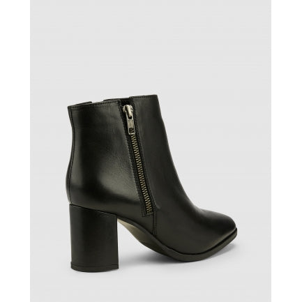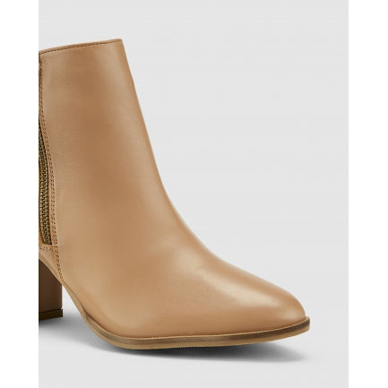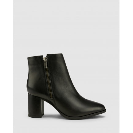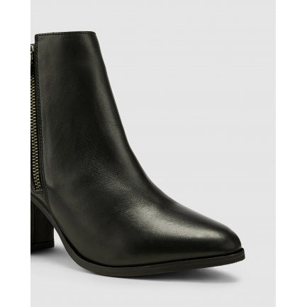 The king of all boots and a stellar style that turns heads! Kayden ankle boots are a stunner with a smooth leather upper and fabric lining with a manmade outsole. The zip-up style adds a heavy dose of overt luxury. Style them with a black short or midi length dress or jeans, their versatility is unquestionable. Available in black and nude colour options.