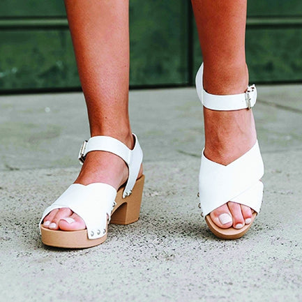 Searching for a versatile strappy heel? Introducing the Marli clogs. These new clogs are an easy way to elevate your everyday look. These leather-look strappy heels feature a buckle for functional style, a 2cm platform and 6cm heel. Pair with boyfriend jeans or a flowy dress for a casual, bohemian style. The Marli clogs are available in black, nude or white. Treat your feet to a pair of Marli heels. Synthetic Upper, Lining and Outsole.