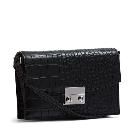Novo Alejandra Stylish Small Bags in sleek black, elegantly designed with a shiny metallic clasp, ideal for festivals and outings. A chic option for those looking for stylish small bags.