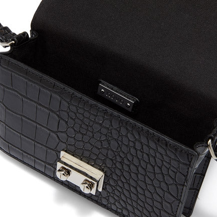 Interior of the Novo Alejandra Stylish Small Bags in black, offering a spacious compartment for essentials while maintaining a fashionable look. The perfect addition for anyone who values stylish small bags.