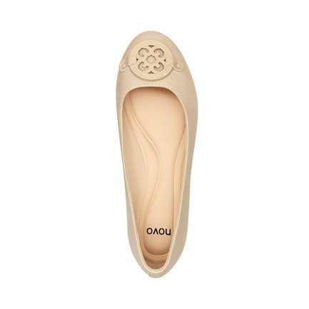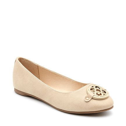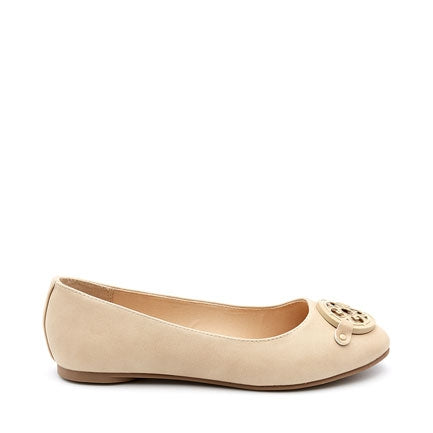 Elevate the everyday in the stunning Ellaboo flat. The compact and comfortable ballet flat style is crafted in a smooth leather-look material with a a soft fabric lining. It has a stylish medallion style embellishment at the toe to draw the eye.