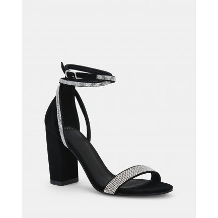 Make sure you are party-ready with PRINCES heels. Extra-special glittery strap on the upper and around the ankle raises the glam factor of this style. Designed in a daring silhouette, this pair rests on glittery block heels, comfortable enough to wear all night long. Let it shine by styling it with your favourite LBD.