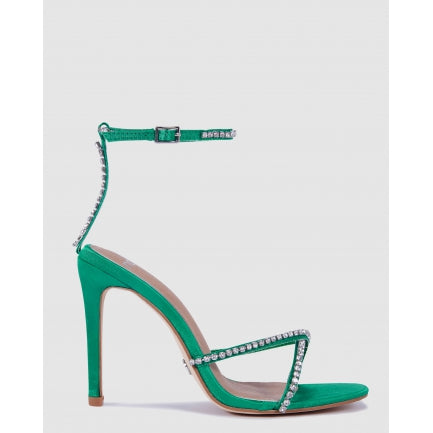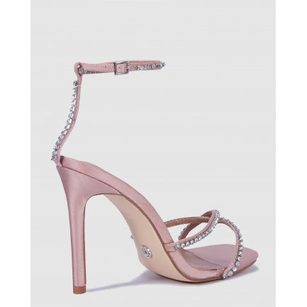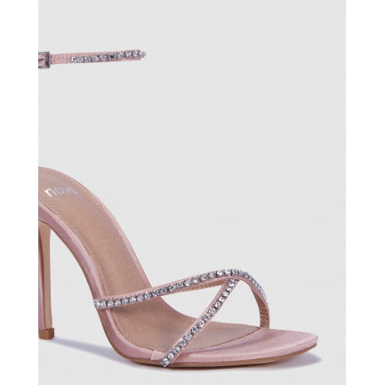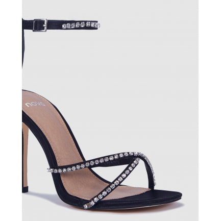 Novo Women's Evening Heels - Satin Stilettos with Diamante Straps & Adjustable Ankle Buckle