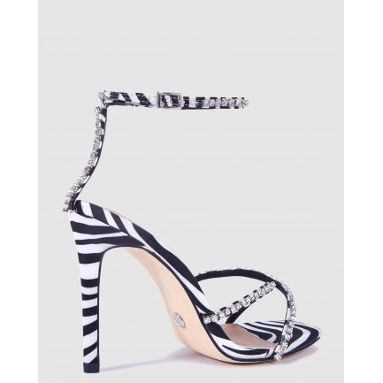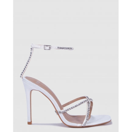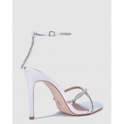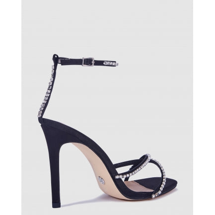 The Promise heels feature a luxurious satin upper adorned with dazzling diamante-embellished straps that catch the light beautifully. With every step, you’ll turn heads and leave a lasting impression. Their unique T-shaped embellished strap at the back adds an extra touch of flair for those who love to stand out.