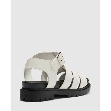 Looking for a shoe that makes a statement? Introducing the Sedonia sandal. This sandal features thick black straps which enclose the foot and a buckle to secure the ankle. The Sedonia is crafted in a soft leather-look material, available in the classic tones of black or white. The Sedonia sits on a small platform to provide a flatting height boost. Style the Sedonia with a black leather jacket and shoulder bag for a chic evening look. The Sedonia is constructed with a synthetic inner, lining and outsole. Step out in style in your new Sedonia sandals. Synthetic Upper, Lining and Outsole.