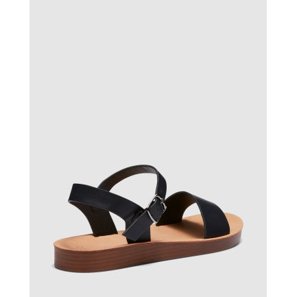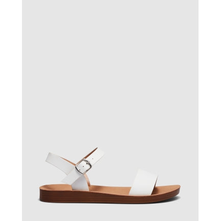 Looking for your new go-to sandal? Introducing the Tiny sandals. These strappy sandals are minimal and chic so you can wear your way. These sandals feature smooth leather-look upper, buckled adjustable ankle strap, padded insole and moulded footbed. Pair with any daytime look for instant style. The Tiny sandals are available in Black, Tan and White. Synthetic Upper, Lining and Outsole.