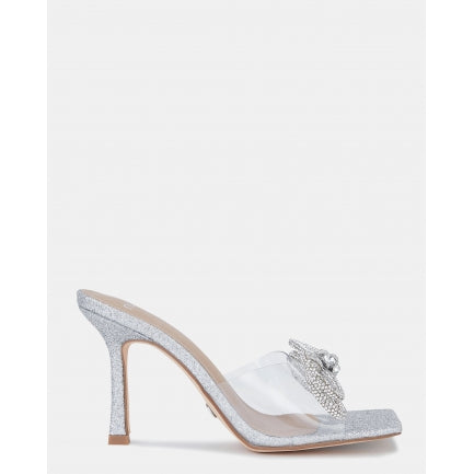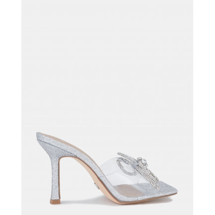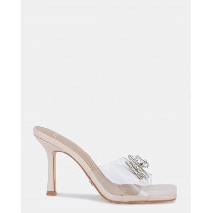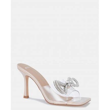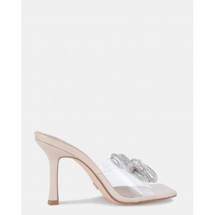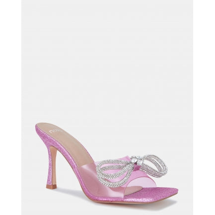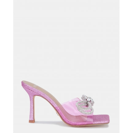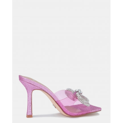 Hey Babe, it’s time to grab all the attention in these dreamy heels! Keep it luxe and gorgeous with Zadore mules by NOVO. These high-heel stiletto mules have arrived in nude microsuede finish, and pink and silver glittery finish with PVC upper. The diamante double bow detail on the vamp with a clear PVC upper gives these slip-on mules the right to steal your heart away.