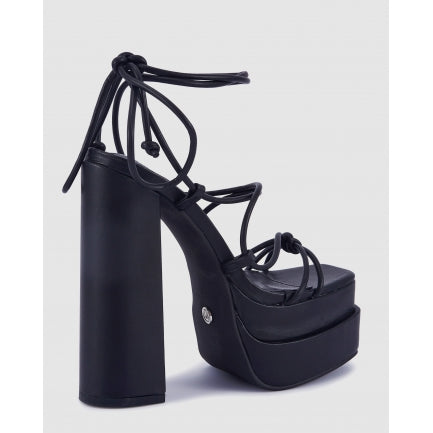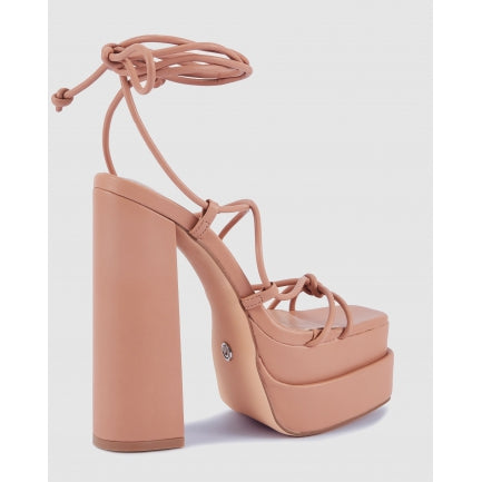 Literally be the highest in the room, with these sky-high block heels. ZOEE platform heels by NOVO have delicately entwined straps on the upper and an adjustable lace-up fastening around the ankle to enhance its appeal. With a statement platform and chunky block heels, this pair is available in black and buff color options.